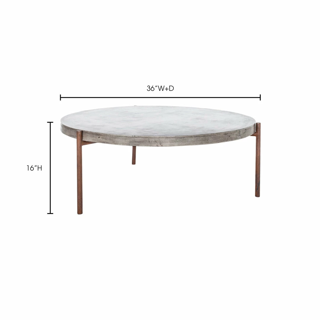 A light-weight fiber-stone top and thin steel legs give the Mendez outdoor coffee table a cool, modern look.