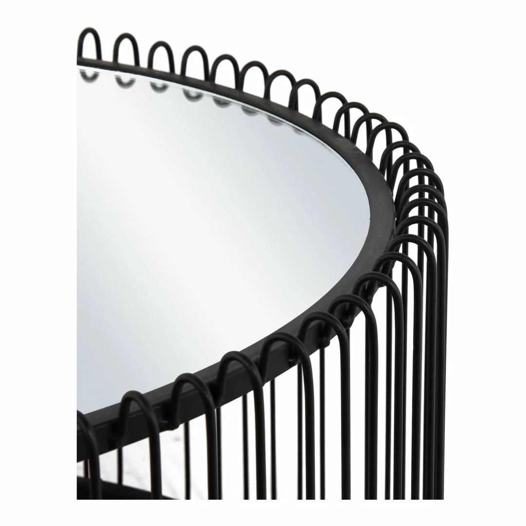 Coiled and sprung with style, this dynamic side table features a mirrored glass tabletop and sturdy, black iron construction that will last for years to come.