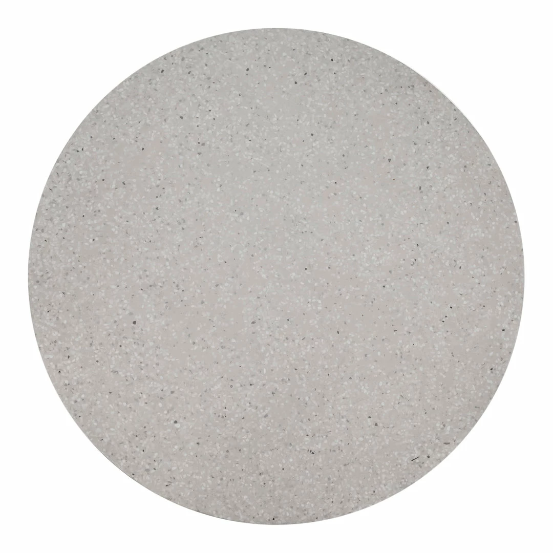 A speckled white terrazzo tabletop paired with a solid iron base make this the ideal dining table for contemporary spaces.
