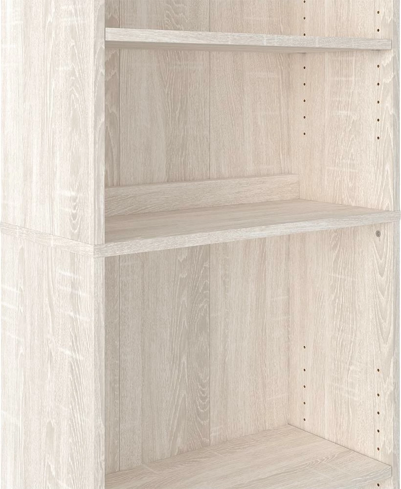 Modern Farmhouse design with an Urban attitude. Made with a paper laminate featuring a two tone replicated gray wood top and antique white base with engineered wood substrate. Each piece is thoughtfully designed to offer style and function to any home office. Drawers use ball bearing side glides for smooth operation. Doors use European style hinges. Desks are designed for easy cord management. These pieces are designed to be RTA flat pack for express ship opportunity. H287-15 small bookcase is 30’H with one adjustable shelf. H287-16 medium bookcase is 36’H with two adjustable shelves.