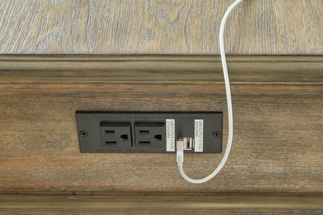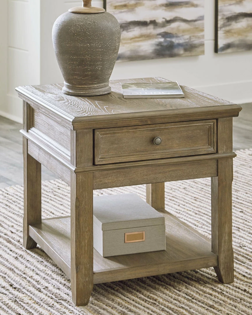 Good things really do come in small packages. Nothing could illustrate this better than this rectangular end table, which features one drawer and one open shelf providing plenty of storage space. The table is sized perfectly to allow room for a table lamp, book and family photos. And with AC power/USB ports in the back, this simply chic end table has the corner on form and function.