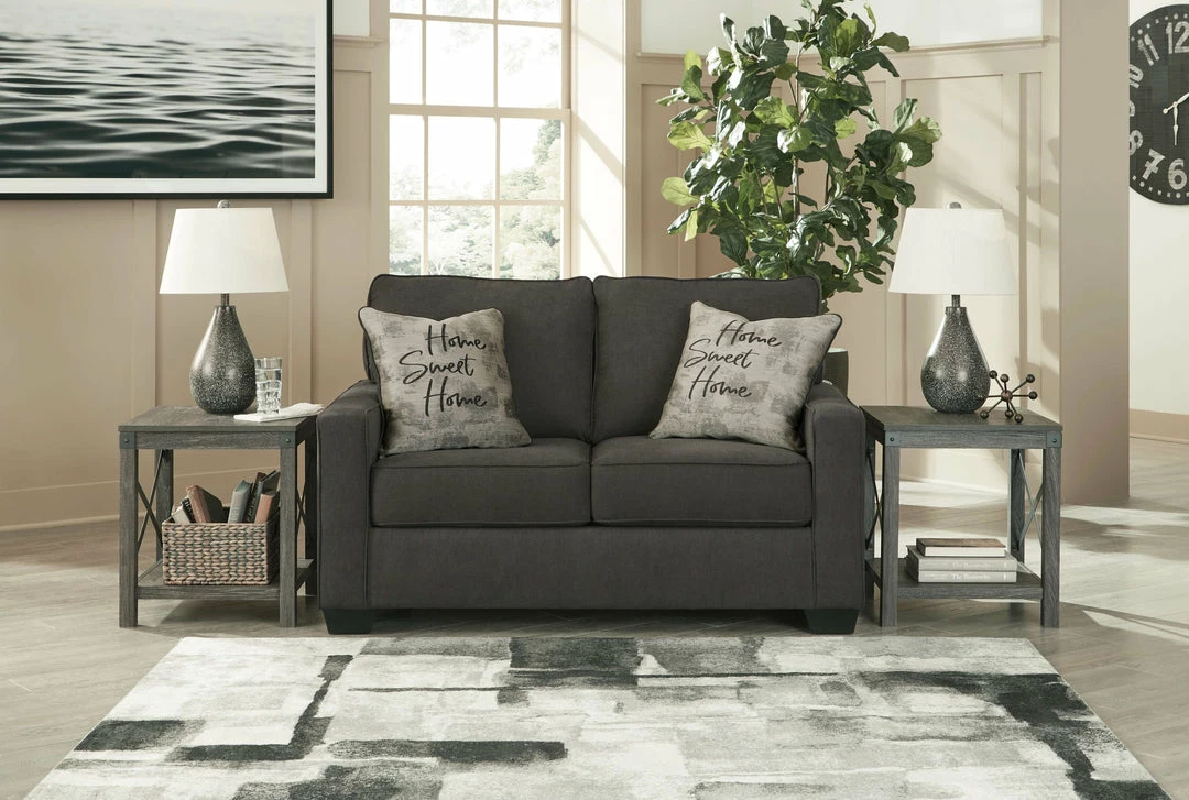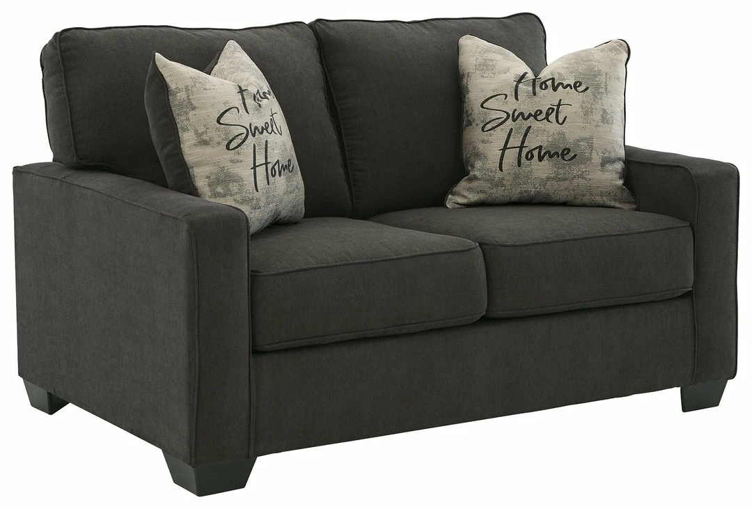 This loveseat sets the foundation for all proclaimed casually cool spaces. Adorned in a soft microfiber upholstery, it features track arms and welted seat cushions. Charming accent pillows perfect the laid-back vibe.