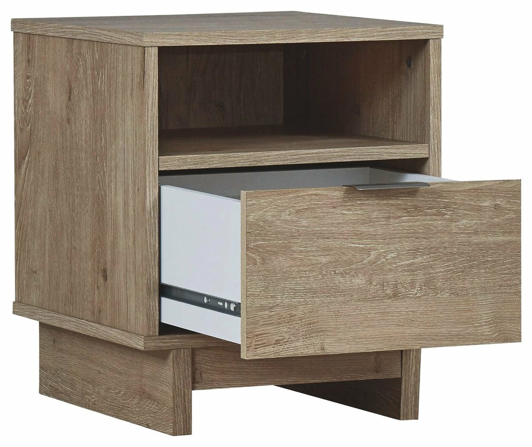 Bringing big style to small living areas, this nightstand is a smart, space-saving choice for those with an eye for contemporary design. Its clean-lined profile and understated refinements create such a simple silhouette that works in so many settings. A flush-mount drawer and open cubby keep this nightstand on the cutting edge of cool.