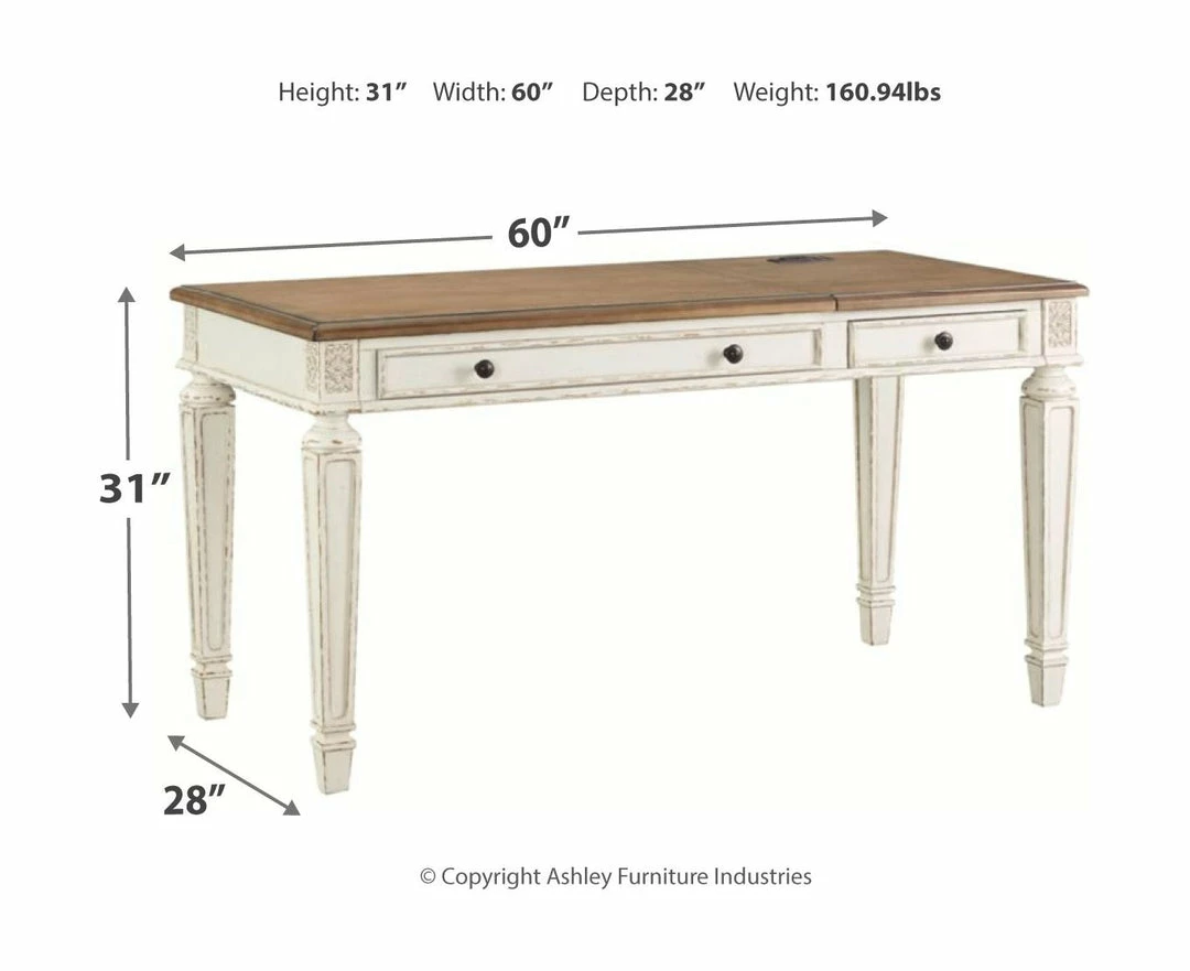Made with Birch and White Oak veneers with Poplar solids. Two-tone finish featuring chipped white cases with distressed wood tone tops. L-desk configuration. The return can be removed to use the main desk alone. H743-34 and H743-134 desks have an AC power supply with (2) USB charging ports. Return desk features two drawers and cord management. Accent bookshelf has drawer storage and matching two-tone effect. H743-134 desk features an incorporated lift top mechanism for working at a standing position and is compatible with H743-34R.