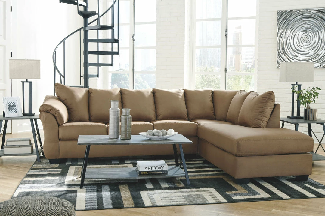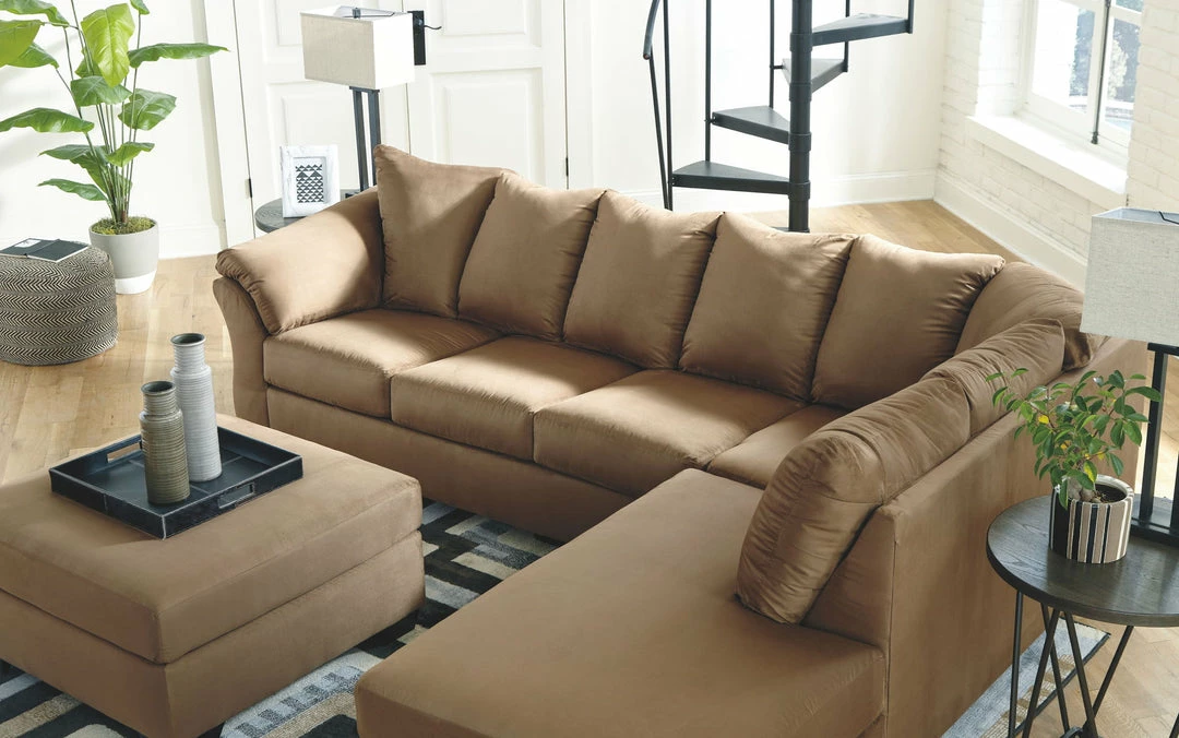 With the exciting contemporary style of the sweeping padded arms and plush pillow back design, the sleek beauty of the —Darcy-Caf— upholstery collection is sure to awaken the d—cor of any home environment while offering the comfort that you have been searching for.