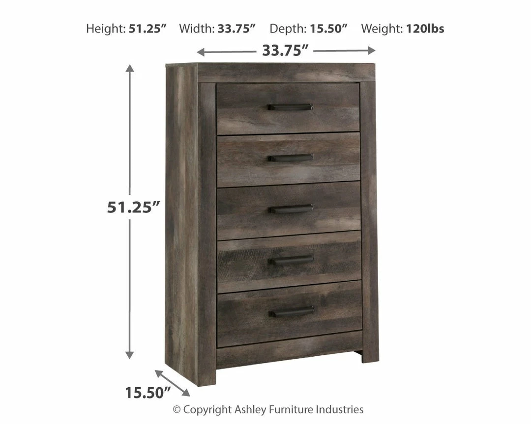 This chest of drawers is sure to win your heart with its daring designer take on modern rustic. The bedroom chest’s crisp, clean and minimalist-chic profile is enriched with a striking replicated oak grain with thick plank styling and a weathered gray finish for that much more authentic character. Large-scale hooded pulls gracing the flush-mount drawers add such a distinctive twist.