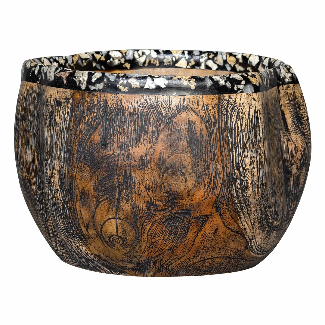 Made Of Natural Teak Wood With A Charcoal Wash, Each Piece Is Handcrafted Making It Unique. Black And White Rim Details Add A Bohemian Element To The Design. Cracks And Variations In The Grain Are Normal.