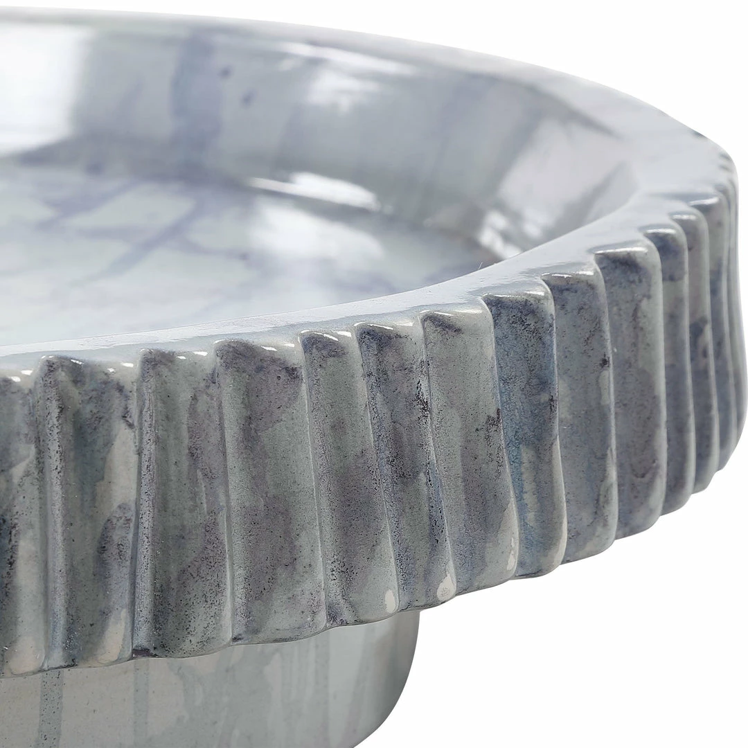 A Contemporary Take On Classic Blue And White Ceramics, This Bowl Features A Unique Ribbed Design With A Hand Applied Cobalt Blue Glaze.