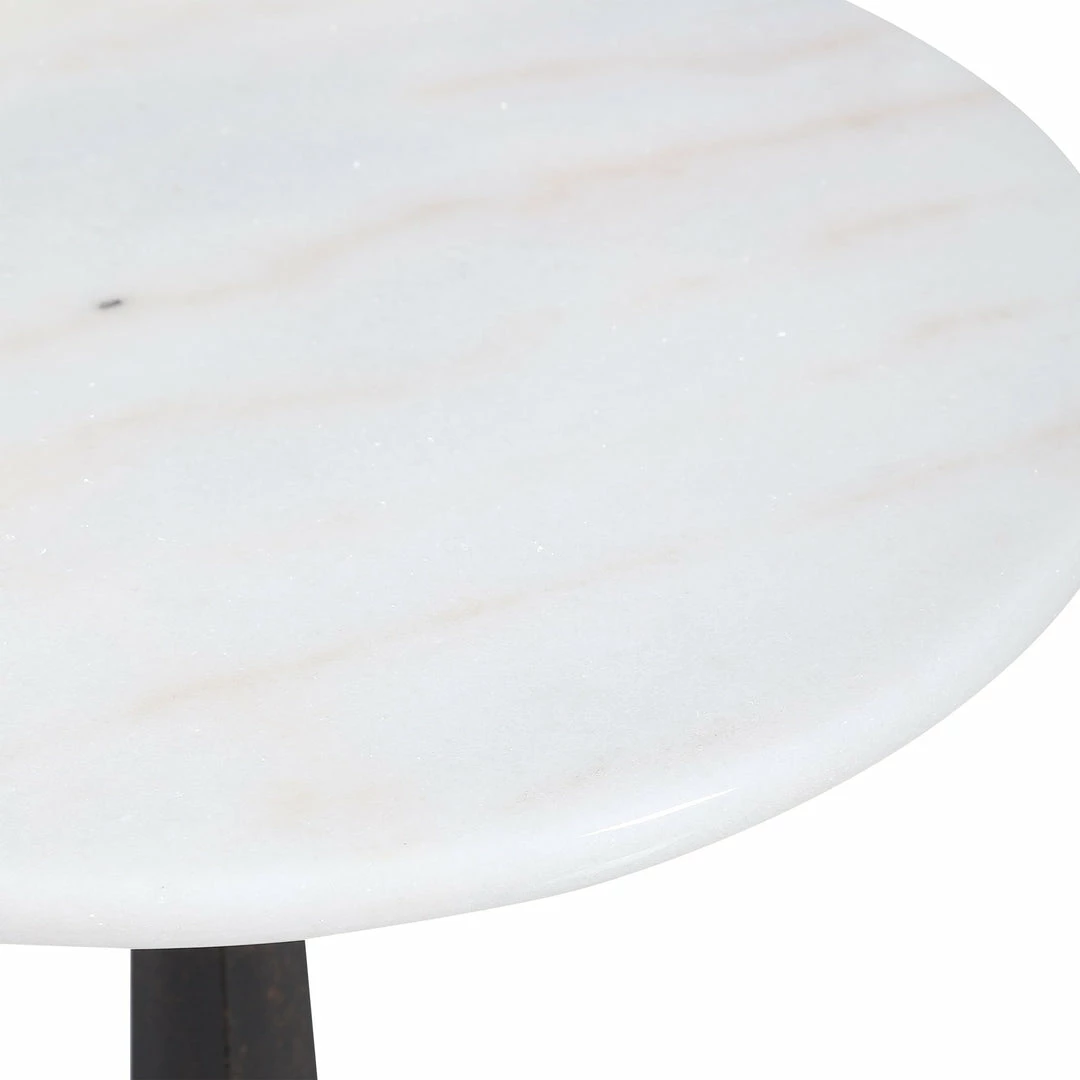 The Perfect Landing Spot For A Drink Or Book, This Drink Table Features A Solid Steel Base Finished In Aged Iron Accented By An Elegant White Marble Top. True To The Nature Of Natural Materials, Each Piece Will Have Unique Marbling And Veining Throughout.