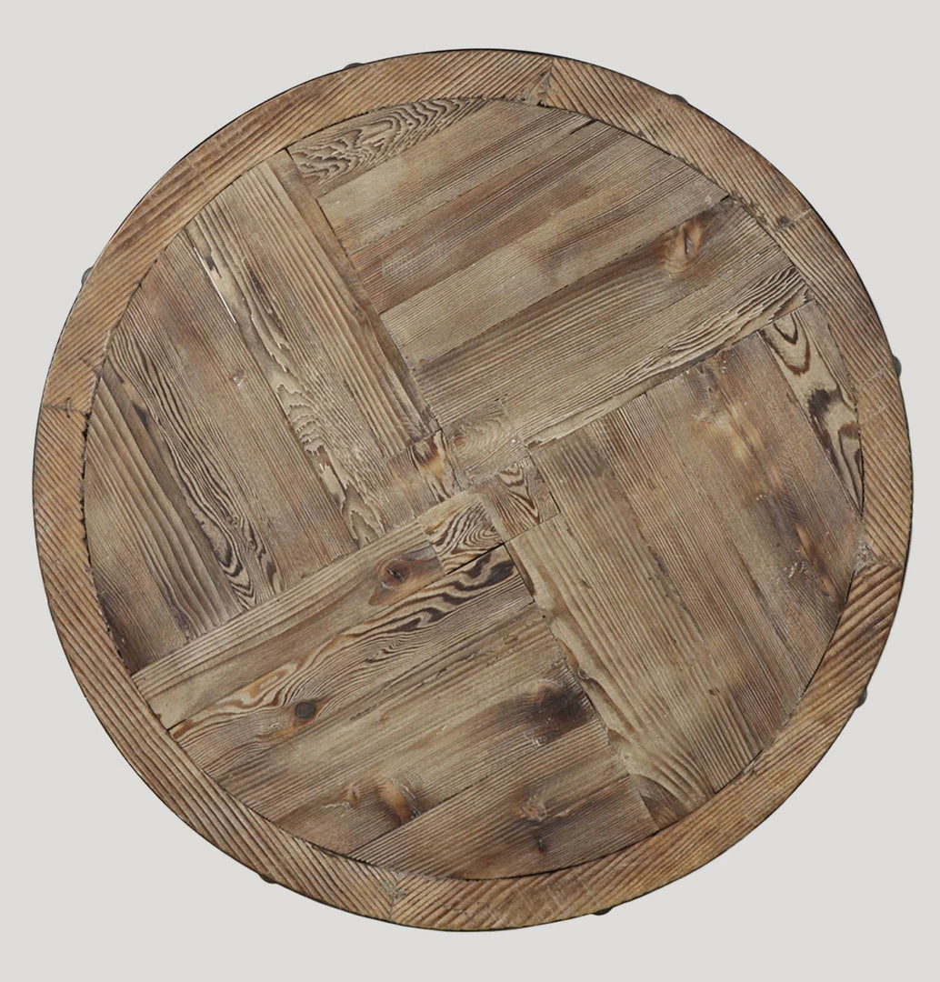 Solid, Natural Fir Wood, Weathered And Sanded Smooth With Aged Black Metal Banding And Rivet Accents.