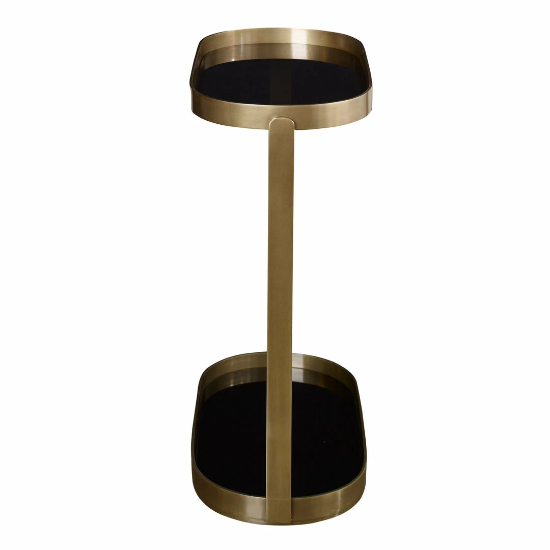 Simple Lines With Versatile Styling, This Thick Stainless Steel Accent Table Is Finished In Antique Gold, Featuring Black Glass Inlaid Shelves.