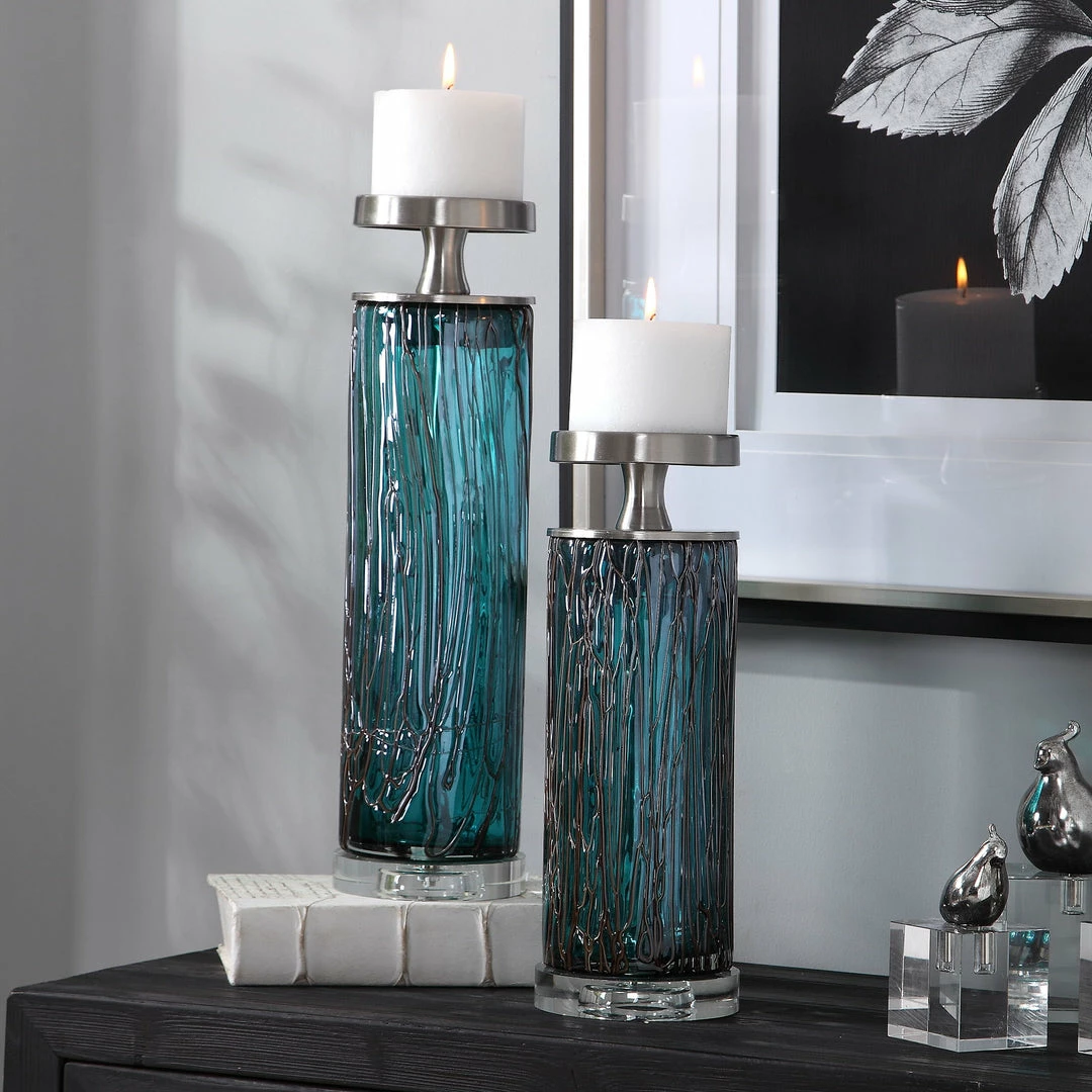 Uttermost Almanzora Teal Glass Candleholders S/2