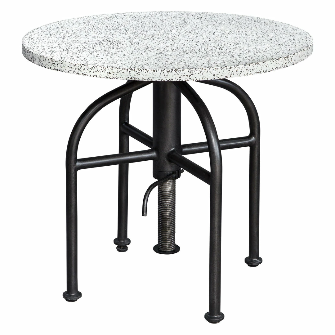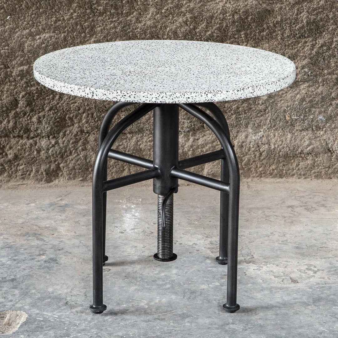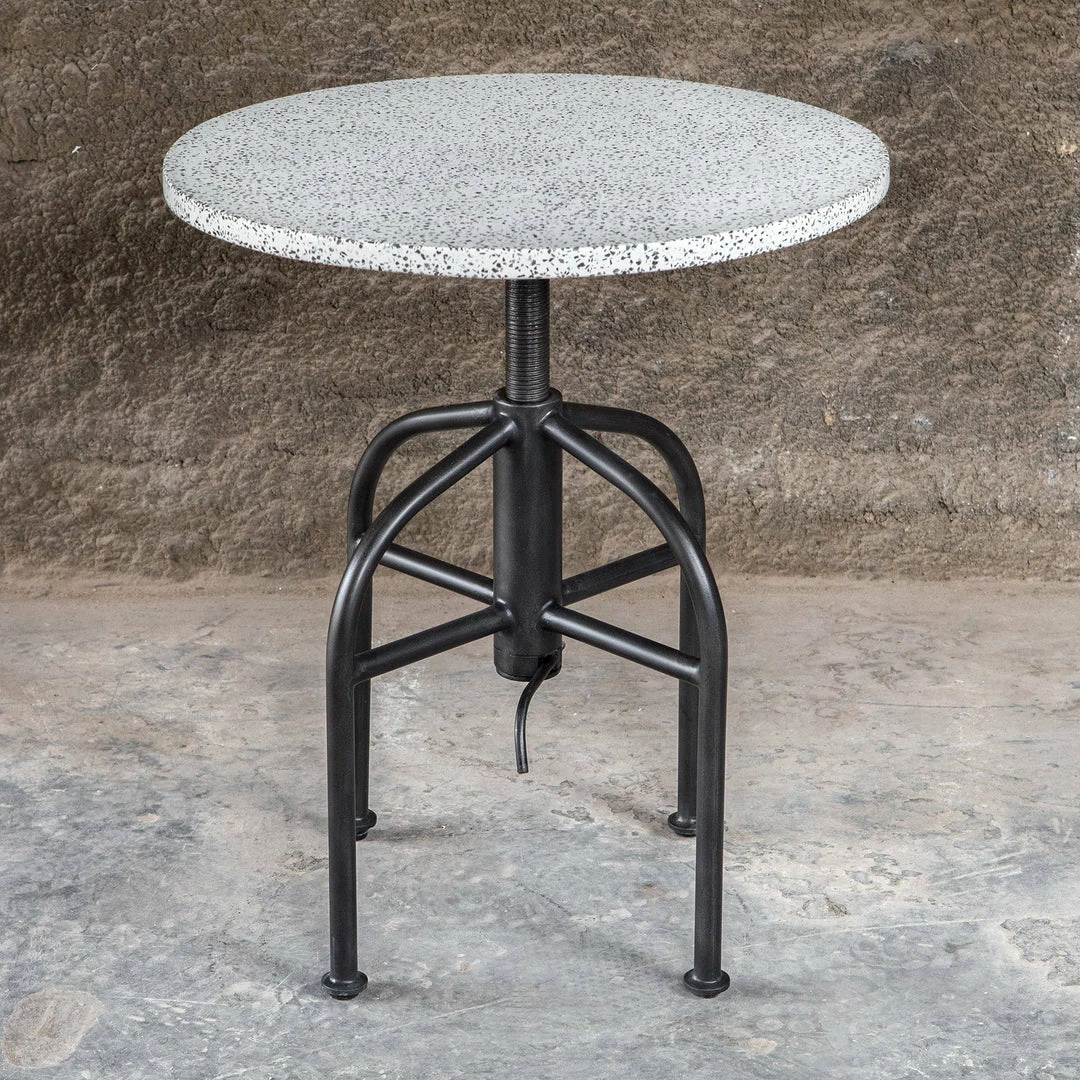 Inspired By Scandinavian Style, This Adjustable Height Accent Table Features A White And Gray Flecked Terrazzo Stone Top, On An Industrial Style Metal Base Finished In Matte Black. Adjusts From 19-24″ Height.