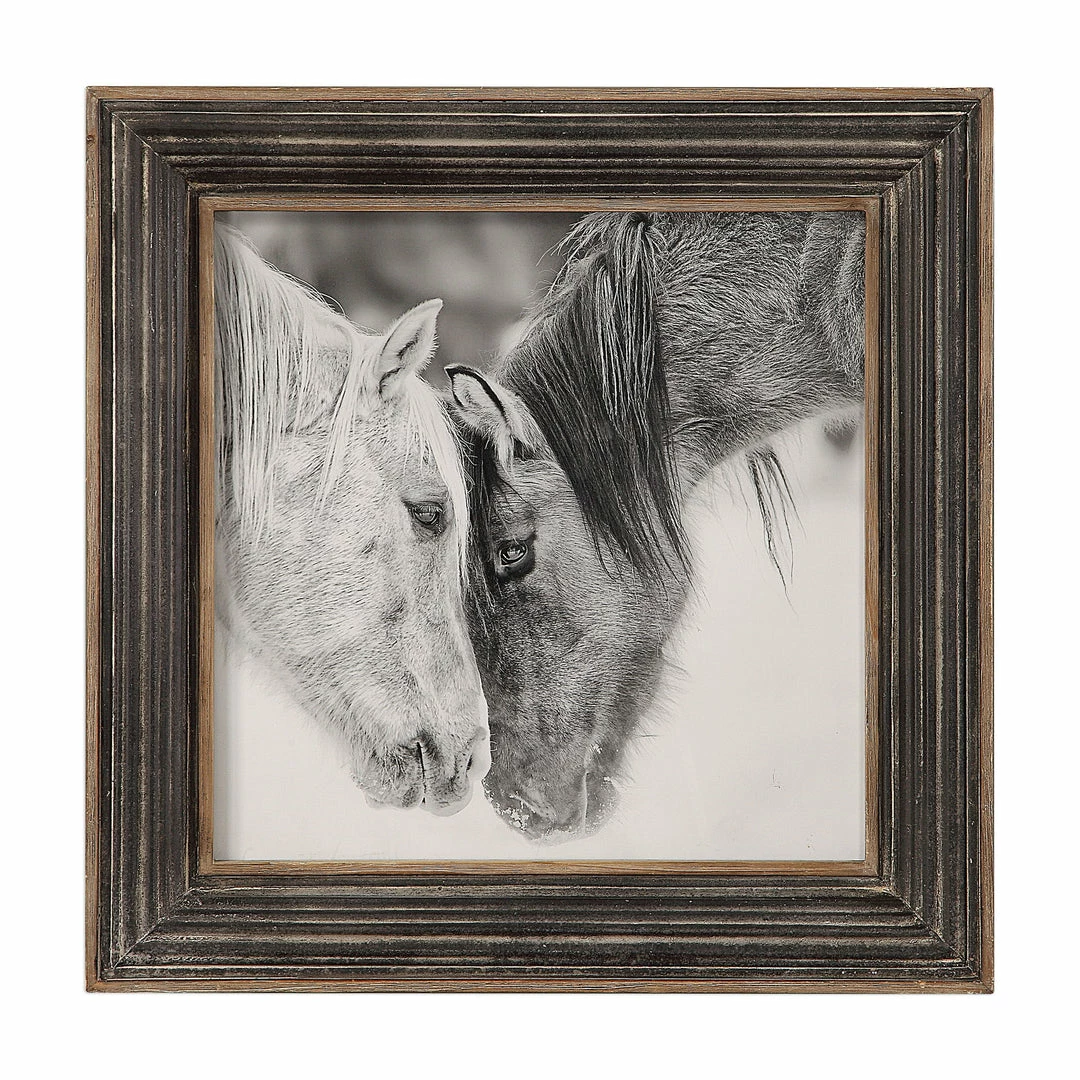 Rustic Charm Is Added To A Design With This Black And White Printed Photograph. The Transitional Animal Print Is Surrounded By A Distressed Wood And Metal Frame With Corrugated Style Ridges. A Distressed Black Finish And Gray Wash Adds Dimension To This Piece. This Print Is Placed Under Protective Glass. Artwork By Ph Burchett.