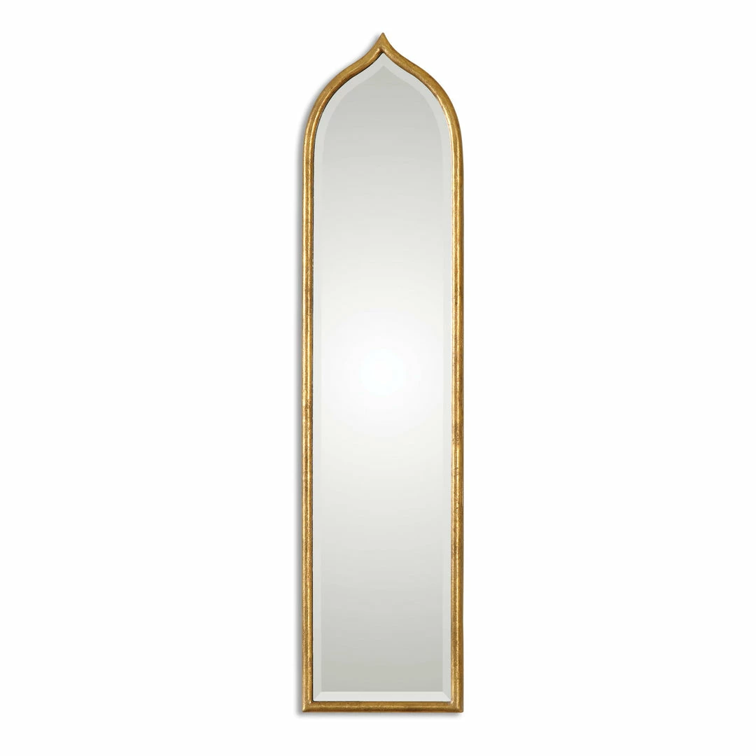 Rounded, Metal Frame Finished In Lightly Antiqued, Gold Leaf. Mirror Has A Generous 1 1/4″ Bevel.