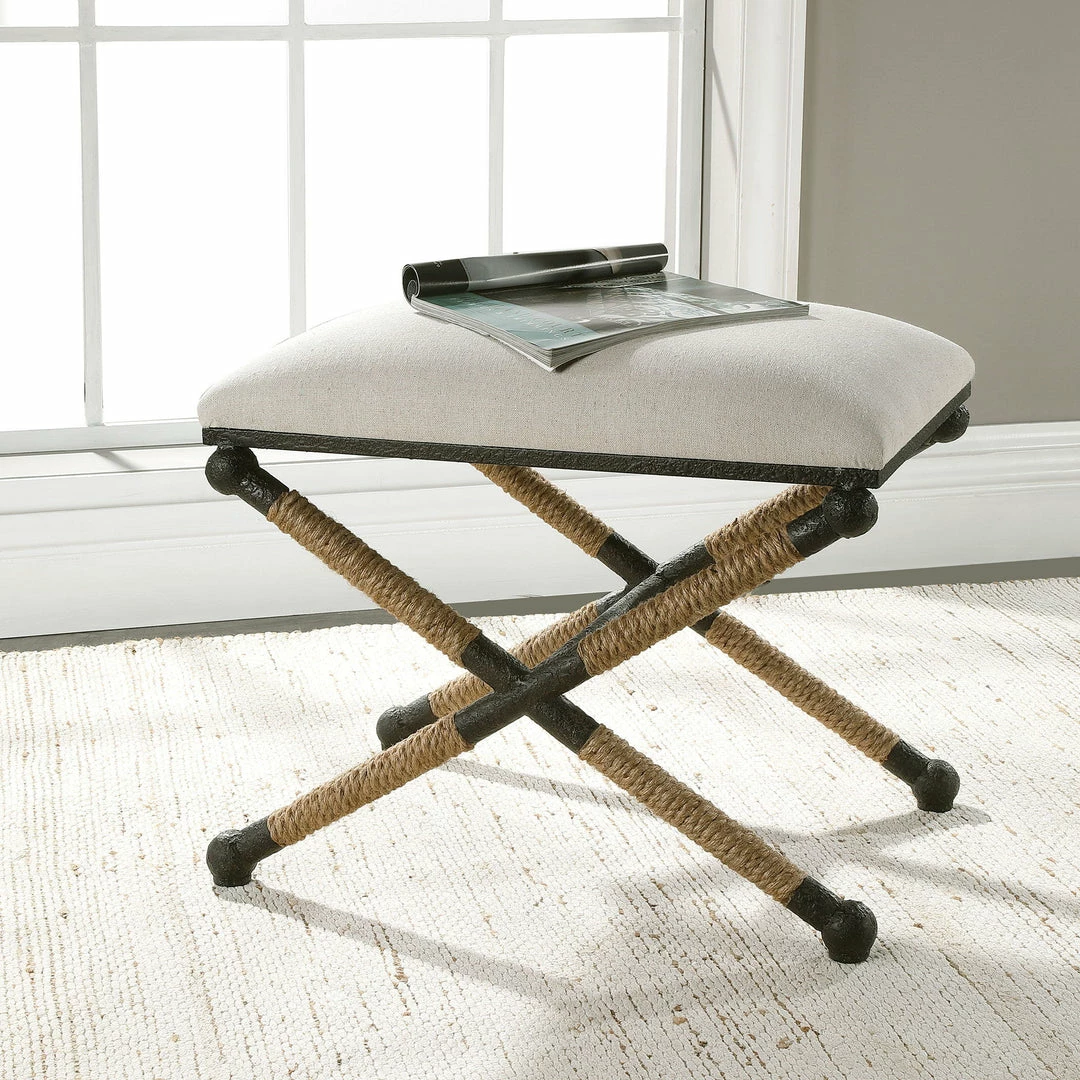 Rustic Iron Frame With A Nautical Touch, Wrapped In Natural Fiber Rope Accents. Cushioned Top Is A Sturdy, Cotton In A Neutral Oatmeal.