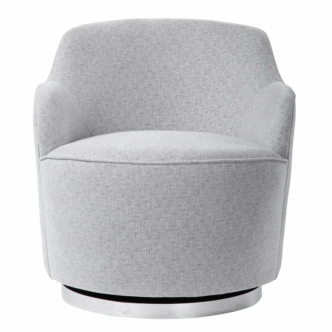 Casual Accent Chair Tailored In A Woven Linen Blend Fabric In Natural Stone Hues. Rests On A Stainless Steel Swivel Base, Finished In Polished Nickel. Seat Height Is 18″.