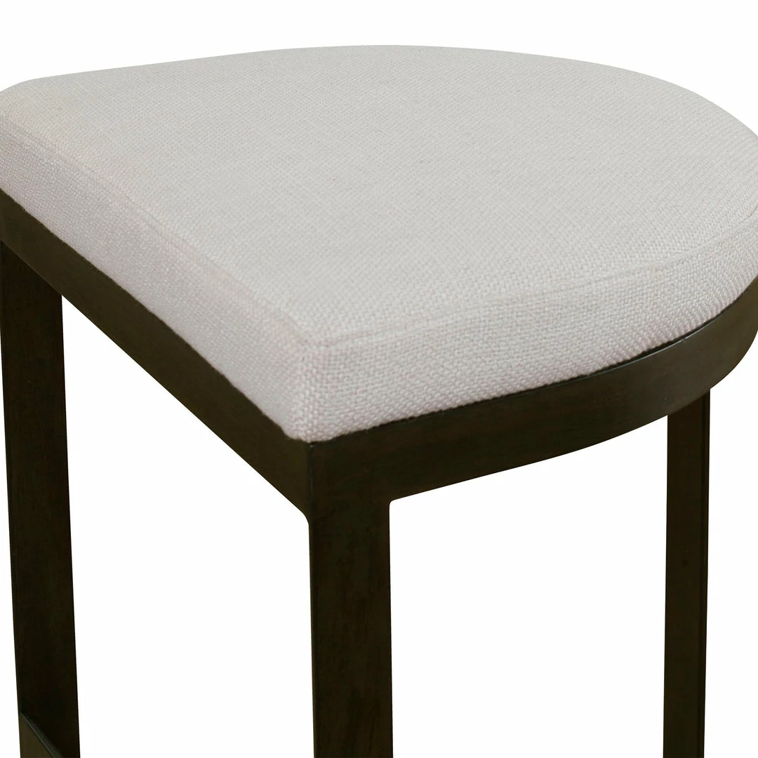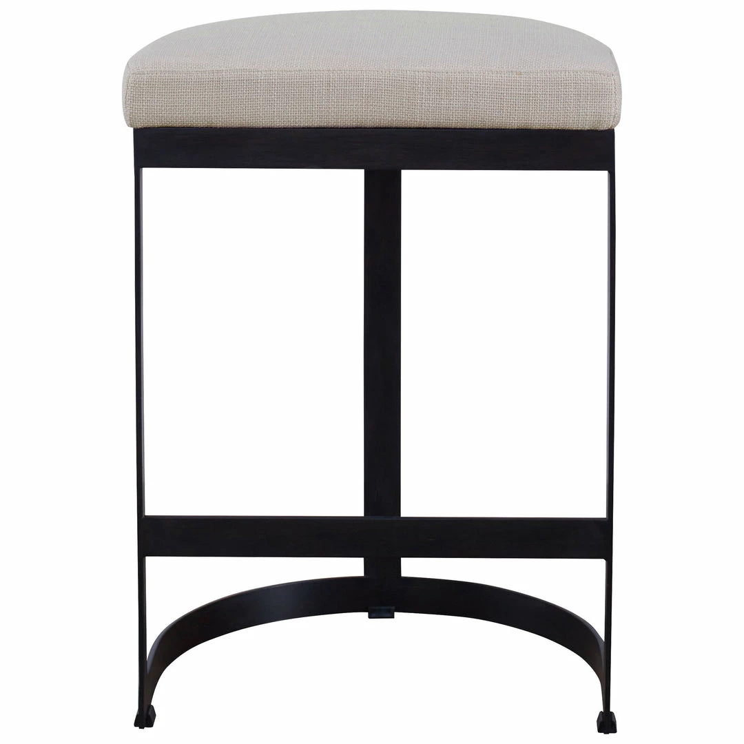 Simplistic But Sturdy, This Statement Counter Stool Features A Thick Hand Forged Iron Base Finished In Matte Black. Plush Seat Is Tailored In An Off-white Linen Blend Fabric. Seat Height Is 26″.