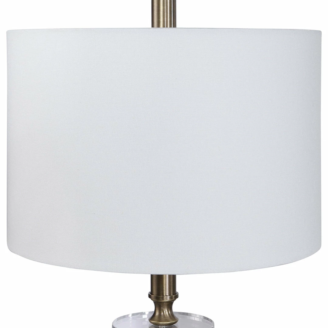 Traditional Elegance Is Showcased In This Floor Lamp, Finished In An Aged Black With Antique Brass Plated Accents And A Thick Crystal Ornament. The Round Hardback Drum Shade Is A White Linen Fabric.