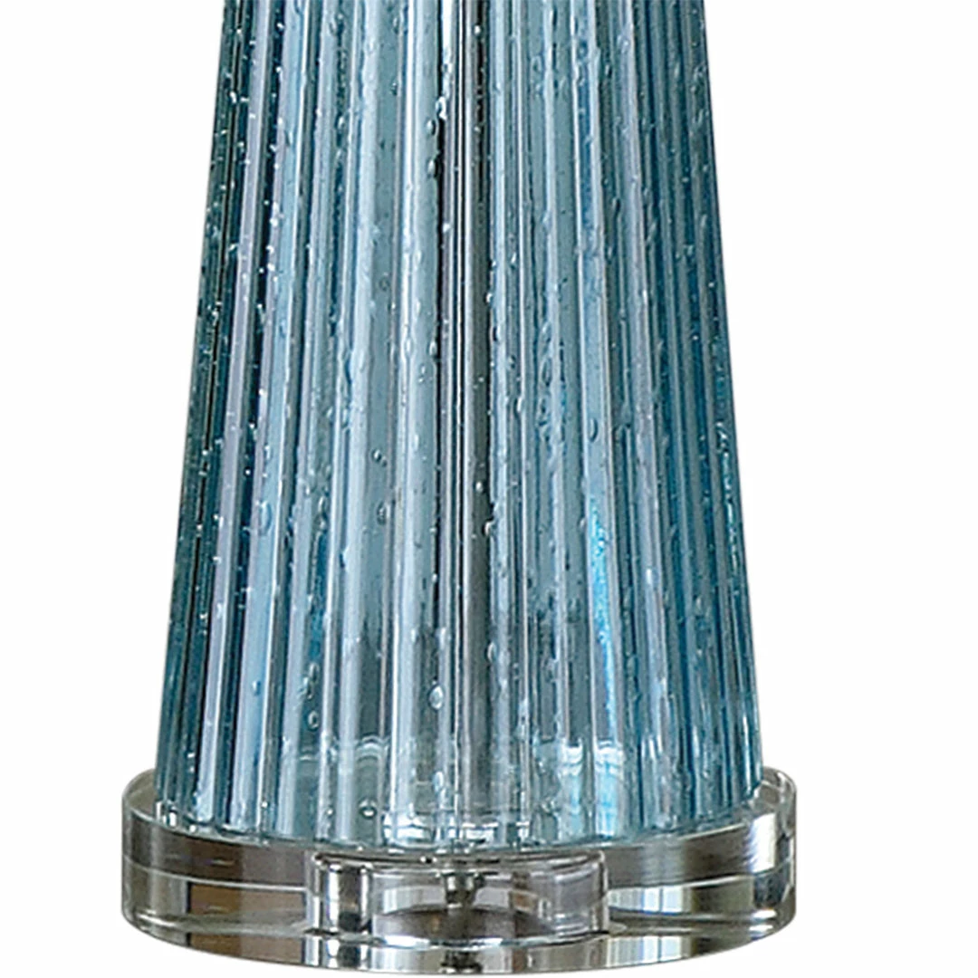 Seeded Blue Glass With A Ribbed Texture Accented With Polished Nickel Plated Details. The Round Hardback Shade Is A White Linen Fabric.