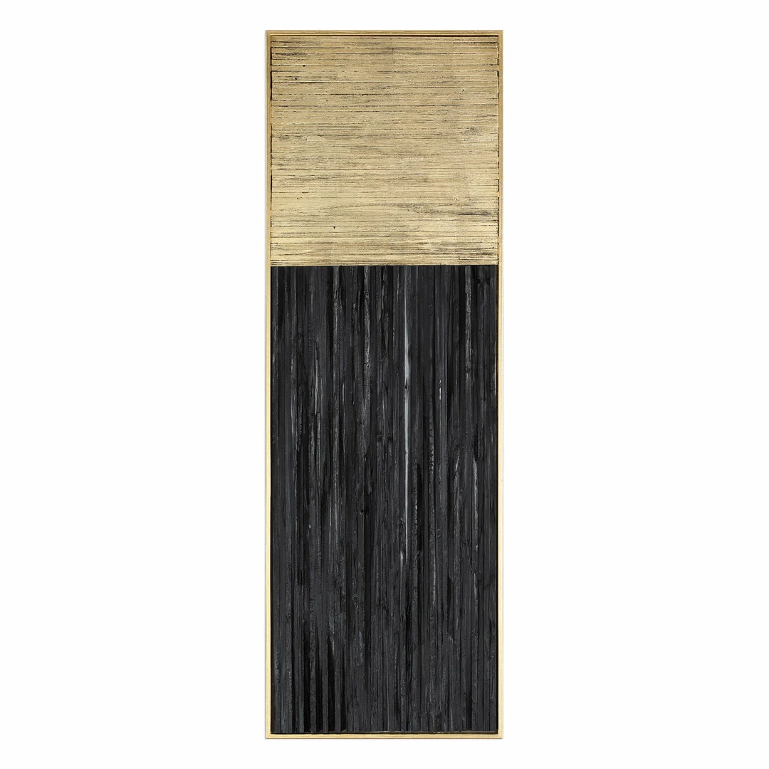 Hand Pieced Layers Of Multi-directional Pine Wood Strips, Creating A Dramatic Textural Effect Finished In A Deep Charcoal Black And Metallic Gold Leaf. Sold Individually But Shown With Three As A Suggestion.