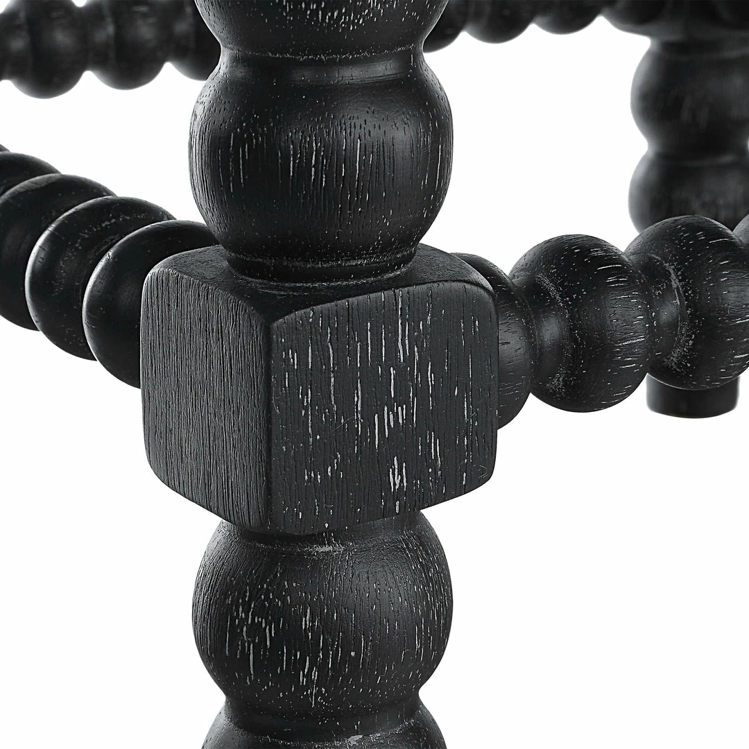 A Stylish And Classic Counter Stool Featuring Spindle Turned Legs And Carved Trim Finished In A Stylish Black Ceruse Stain. Plush Seat Is Tailored In A Crisp White Performance Fabric. Seat Height Is 26″.