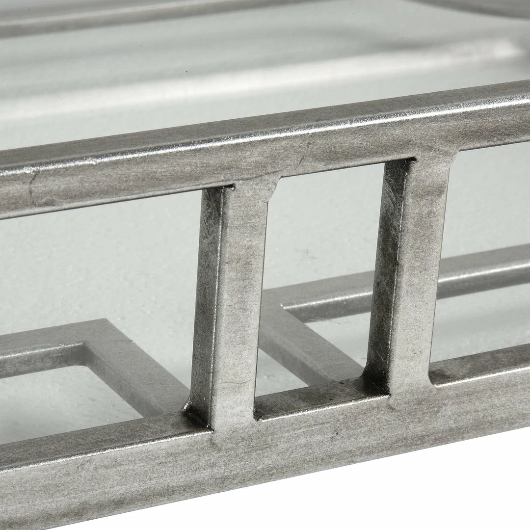 Forged Iron With A Metallic Silver Leaf Finish Accented By A Reinforced Glass Interior.