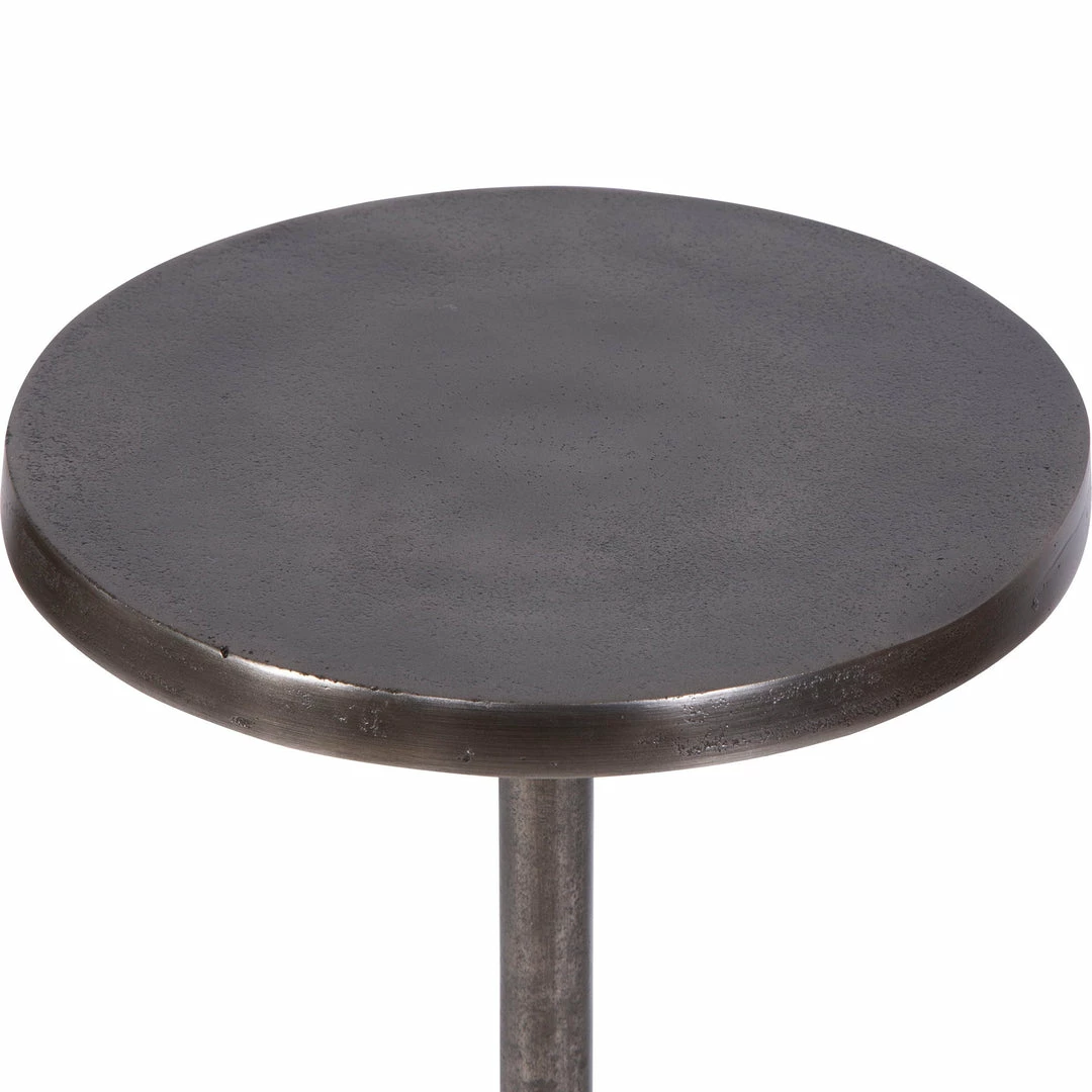 Minimalist In Style With A Chunky Base, This Solid Aluminum Drink Table Features A Textured Finish In Antique Nickel.