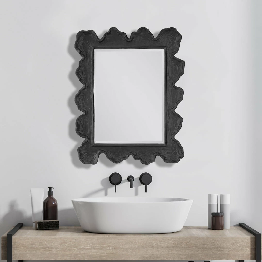 Reminiscent Of Natural Black Coral, This Mirror Showcases A Contemporary Coastal Design. The Organic Shaped Frame Is Finished In Black With Noticeable Waves And Texture. May Be Hung Horizontal Or Vertical.