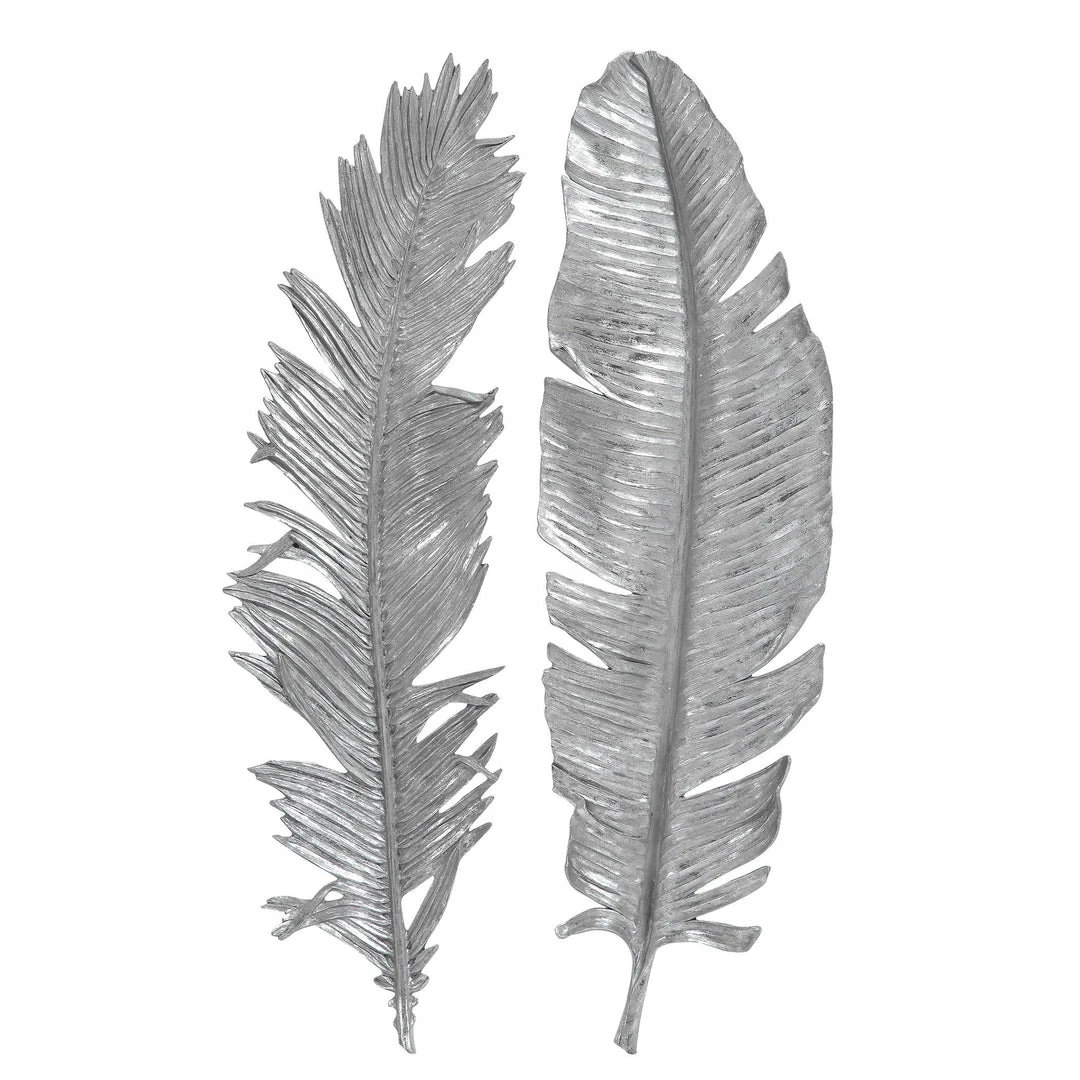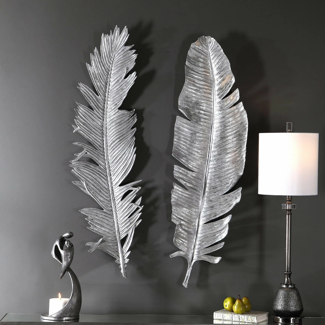 A Whimsical Set Of 3-dimensional Cast Feathers In Hand Applied Bright Metallic Silver Leaf.