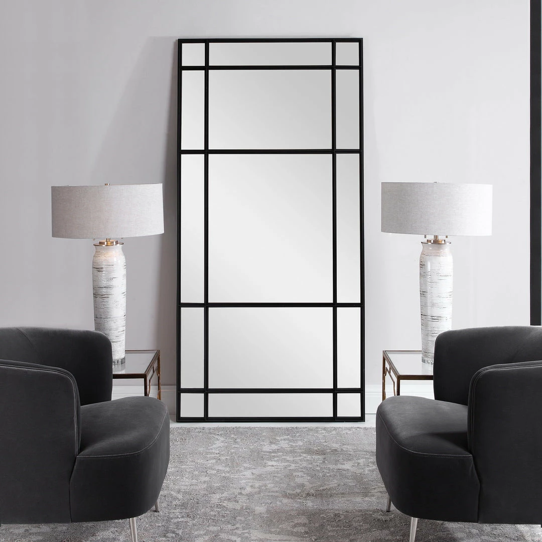 This Oversized Mirror Features A Heavy Iron Frame With Deep Channels Inspired By Old Warehouse Windows, Finished In Satin Black. May Be Hung Horizontal Or Vertical.