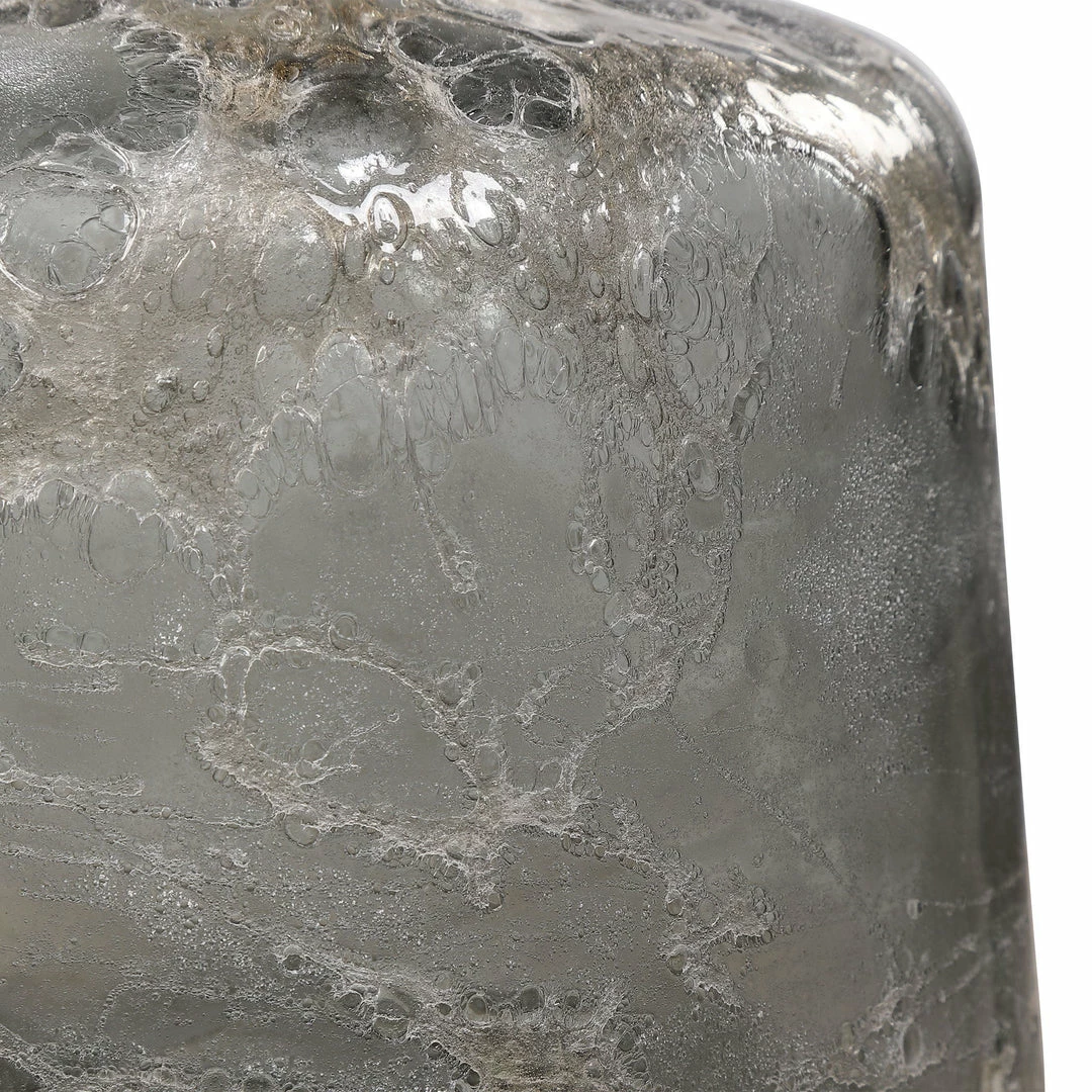 Crafted From Art Glass, These Bottles Showcase A Unique, Heavy Texture And Are Finished In Neutral Shades Of Charcoal, Taupe And Silver. Each Is Accented By A Silver Leaf Finished Iron Top. Sizes: S-9x15x9, L-6x18x6