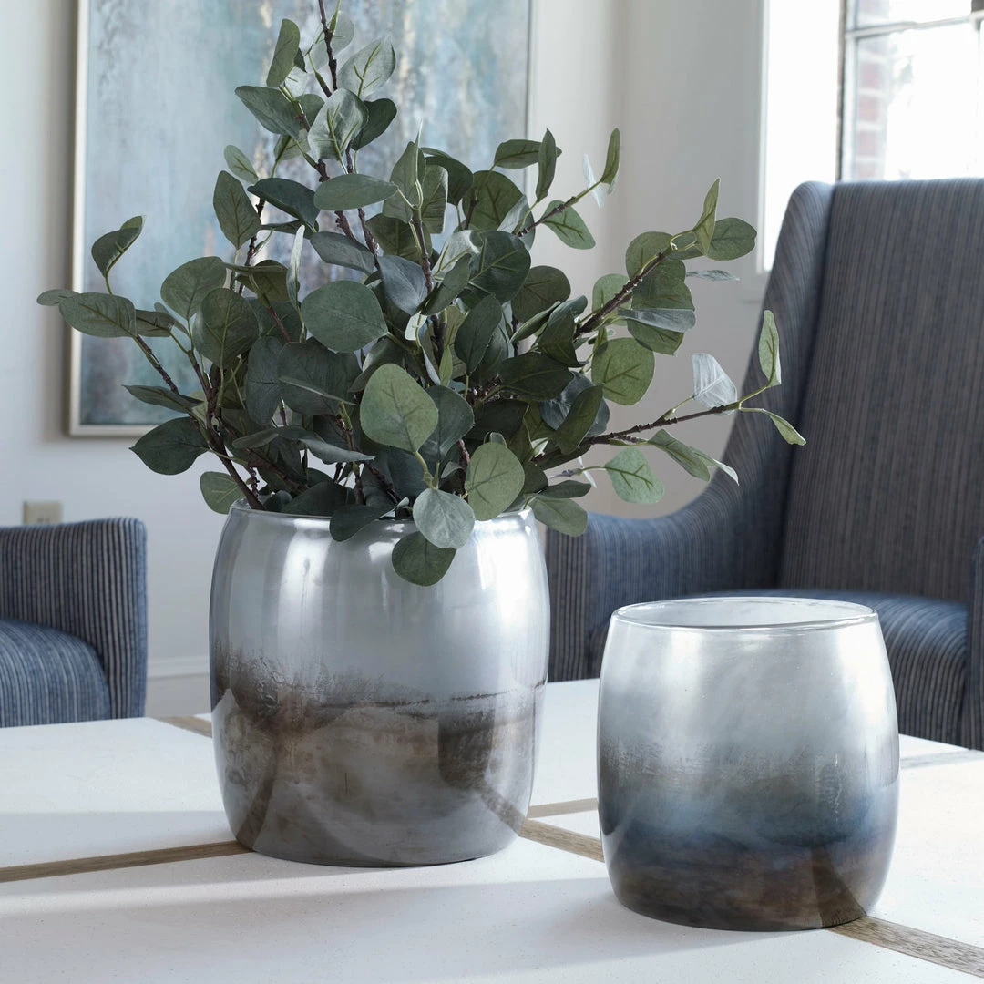 Handcrafted From Blown Glass, These Bowls Feature An Ombre Finish Of Gray, Black And Bronze With An Iridescent Glaze To Complete The Unique Look. Sizes: Sm-7x7x7, Lg-9x9x9
