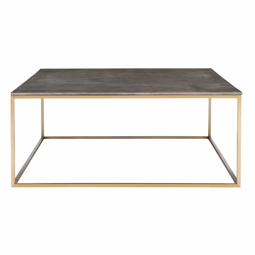 Inspired By Modern Styling, This Coffee Table Features A Beveled Faux Shagreen Wrapped Top In Charcoal Gray Paired With A Sleek Stainless Steel Base Finished In Brushed Brass.