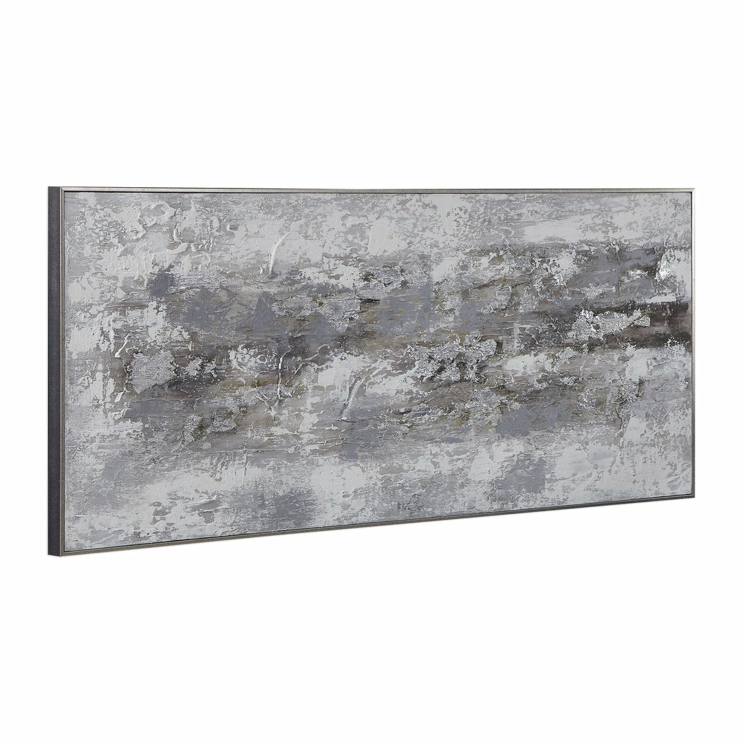 Modern, Industrial Style Can Be Found In This Hand Painted Abstract On Canvas. Various Shades Of Warm And Cool Gray Are Accented By White And Silver Leaf Accents In A Heavily Textured Finish. A Textured Silver Leaf Gallery Frame Completes This Piece. Due To The Handcrafted Nature Of This Artwork, Each Piece May Have Subtle Differences. This Piece May Be Hung Horizontal Or Vertical.