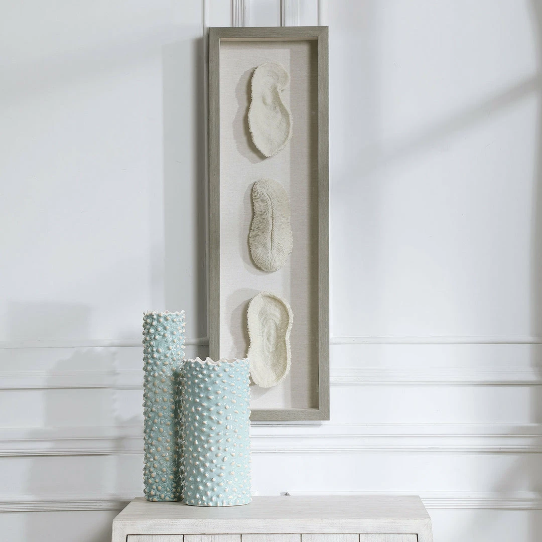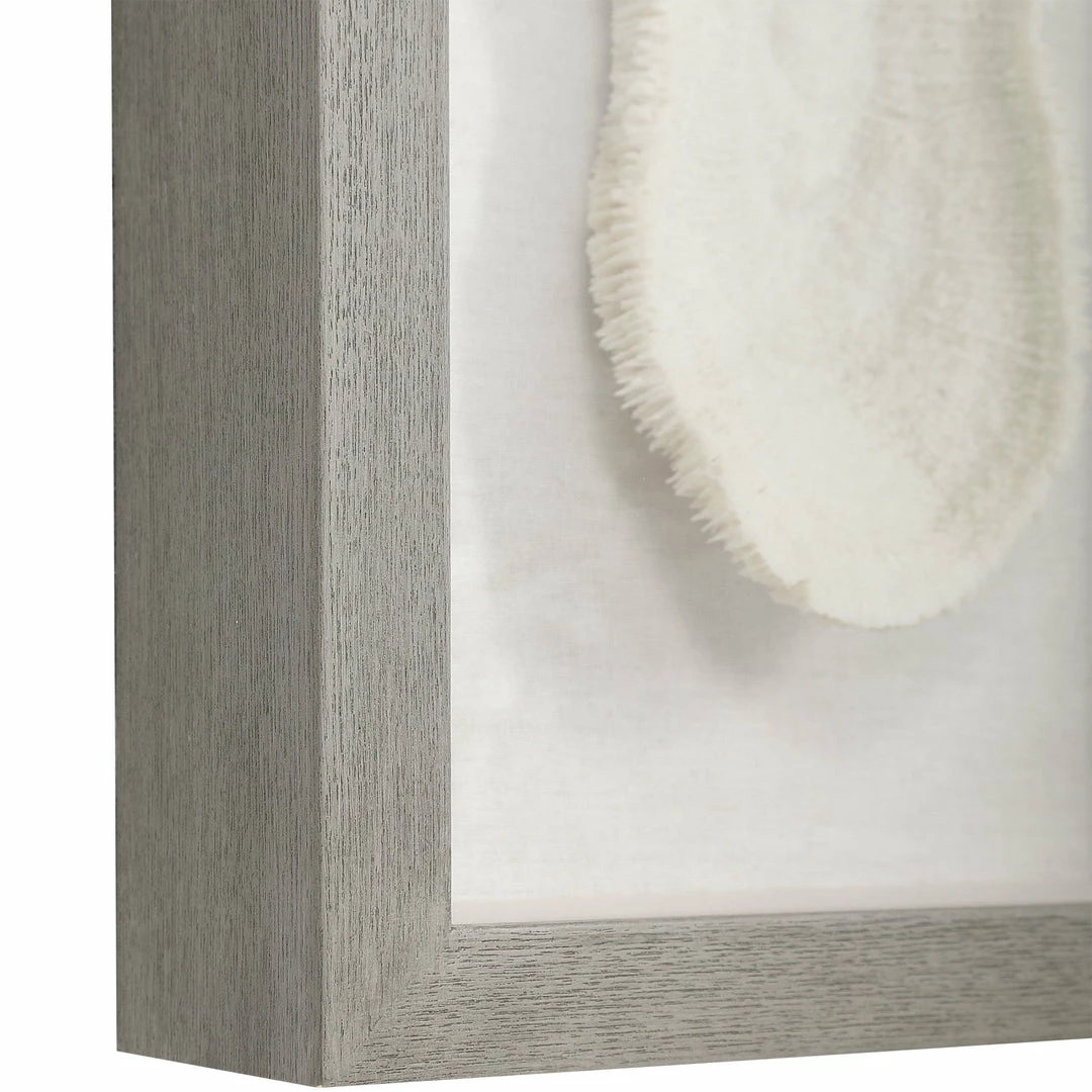 Reminiscent Of Preserved White Coral, This Shadowbox Design Exudes Refined Coastal Style. The Shadow Box Style Frame Has A Light Gray Finished Pine Wood Exterior With A Beige Linen Backing. May Be Hung Horizontal Or Vertical.