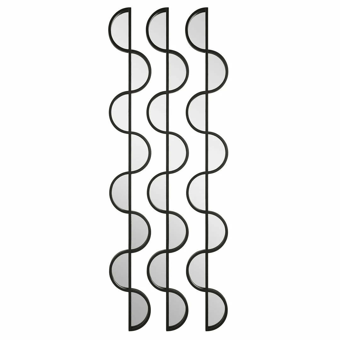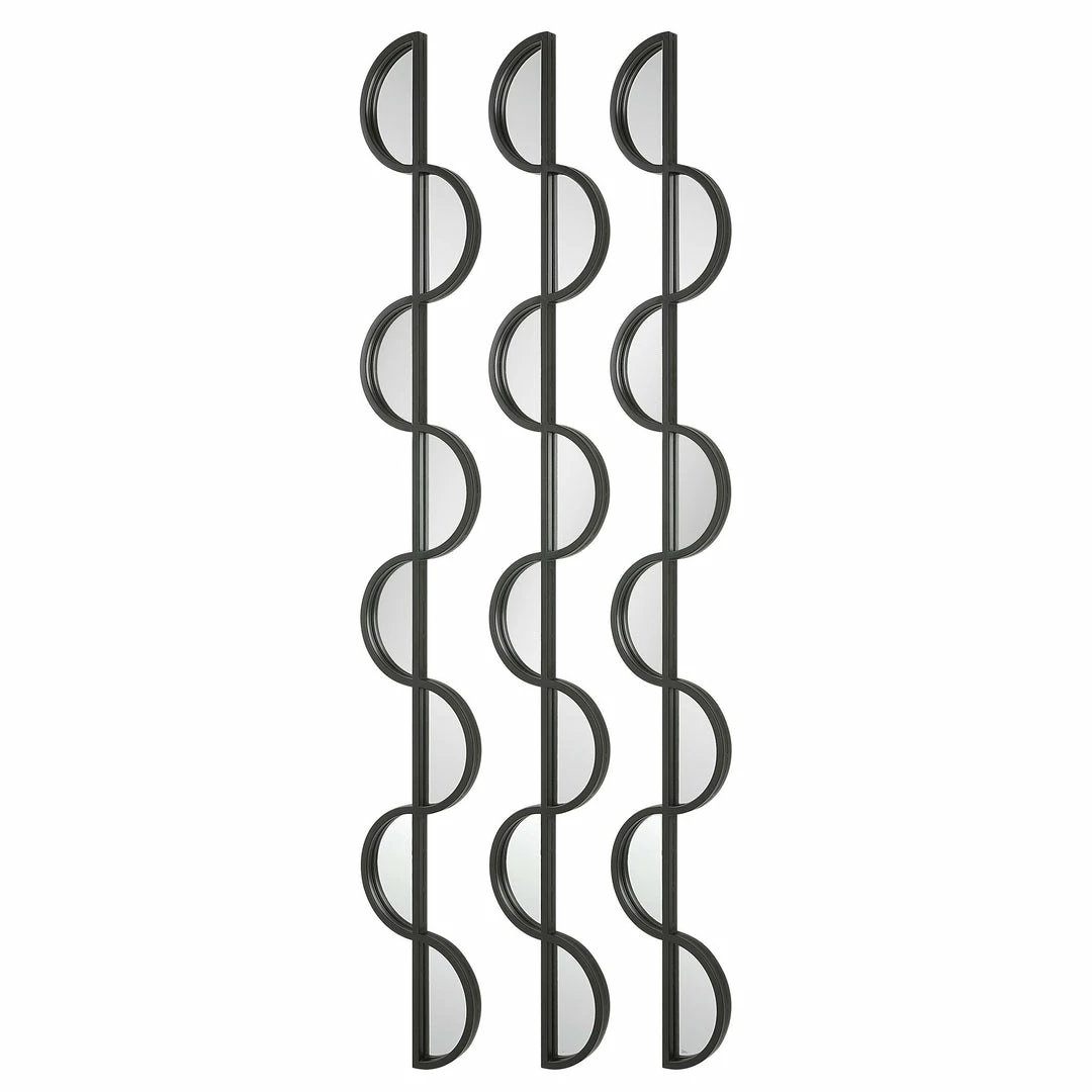 Set Of Three Iron Wall Pieces Showcase A Curved Silhouette Finished In Matte Black With Inset Mirrored Accents. May Be Hung Horizontal Or Vertical. Hang Multiple Sets Together To Create A Truly Unique Wall Display.